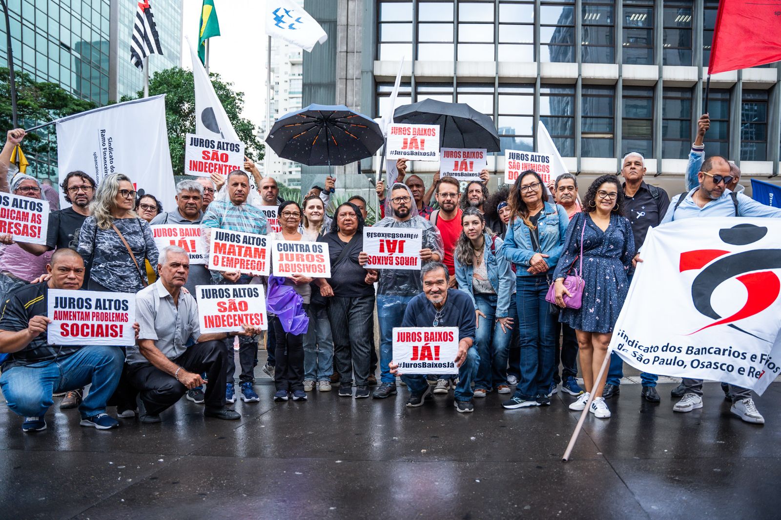 Basta de juros altos! Centrais sindicais protestam na sede do Banco Central