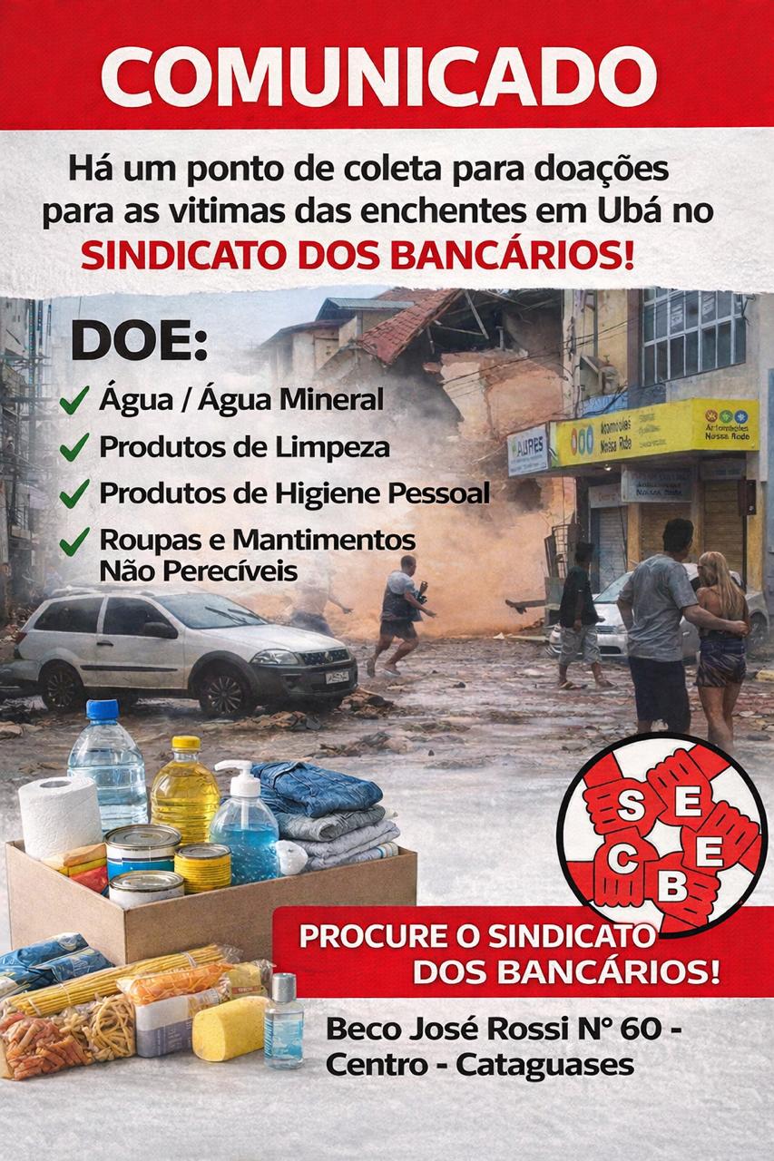 A Contraf-CUT orienta que sindicatos e federações reforcem a divulgação da campanha em suas bases e redes sociais, ampliando a corrente de solidariedade aos atingidos pelas chuvas em Minas Gerais.