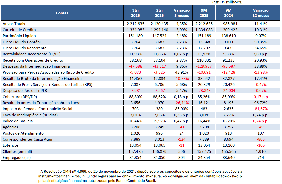 Lucro da Caixa cresce 50,3% no 3º trimestre de 2025