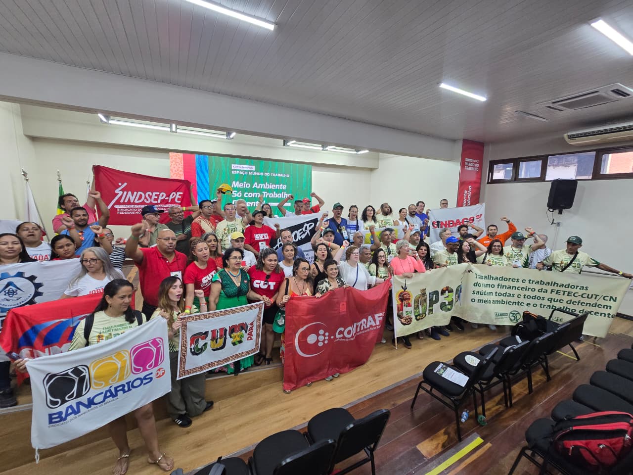 Além de representantes da Contraf-CUT, como Elaine Cutis (Secretaria de Políticas Sociais); Walcir Previtale (Secretaria de Assuntos Socioeconômicos); Rita Berlofa (Secretaria de Relações Internacionais); Jeferson Meira (Secretaria de Relações do Trabalho); e Katia Cadena (dirigente), a delegação de representantes sindicais bancários na Cúpula dos Povos ultrapassa, em número, 50 pessoas. “Somos dirigentes de diversos estados de todas as regiões do país, nesta luta por justiça climática, por transição justa", observou Elaine Cutis.